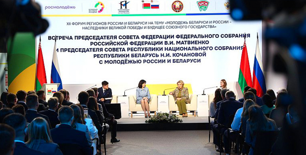 В рамках деловой программы Форума 26 июня состоялась встреча Председателя Совета Федерации Федерального Собрания Российской Федерации В.И. Матвиенко и Председателя Совета Республики Национального собрания Республики Беларусь Н.И. Кочановой с представителями молодежи России и Беларуси.