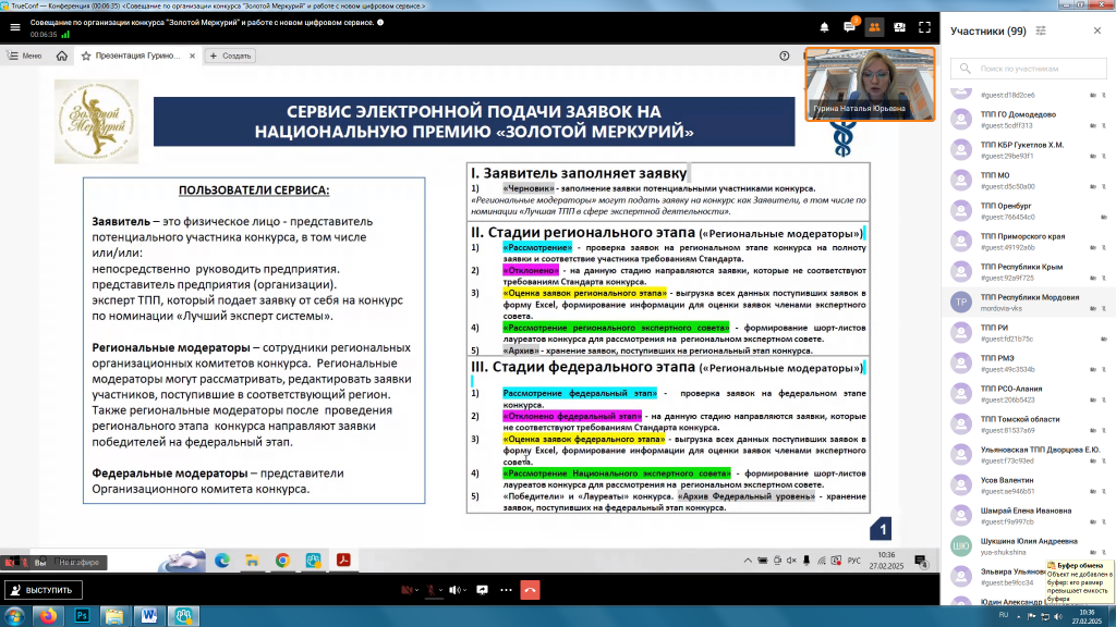 В данном вебинаре приняли участие Оргкомитет ТММ РМ и конкурсанты – предприниматели Мордовии.