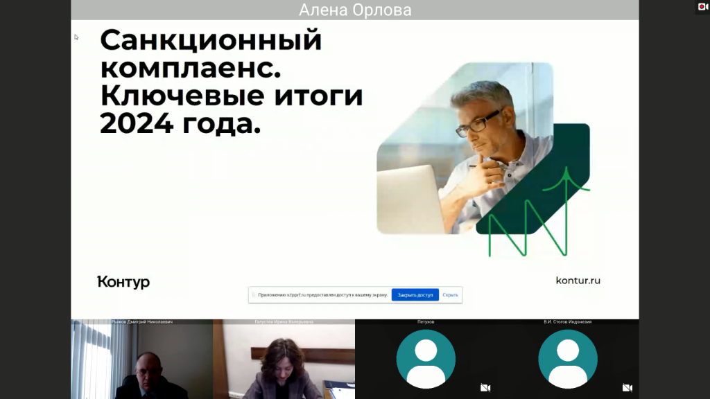В завершение вебинара Алёна Орлова, эксперт по законодательству и санкционному риску АО ПФ «СКБ Контур», представила обзор на практику применения санкционных комплаенс-процедур, используемых российскими участниками ВЭД. Она также представила обзор возможностей проекта «Фокус.Комплаенс» в части мониторинга индикаторов санкционных рисков при ведении внешнеторговой деятельности.