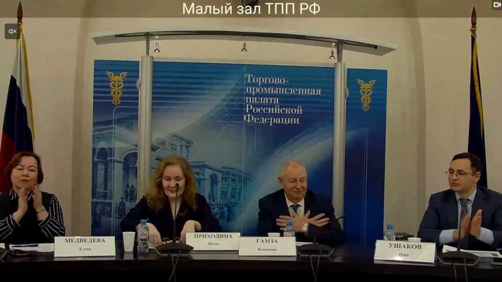 Совместное заседание открыла заместитель председателя Совета ТПП РФ по финансово-промышленной и инвестиционной политике Юлия Приходина. Также с приветственными словами выступили член правления ТПП РФ, председатель Совета ТПП РФ по финансово-промышленной и инвестиционной политике Владимир Гамза и директор департамента проектной и инвестиционной деятельности ТПП РФ Елена Медведева.